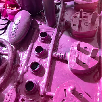 in these installations, trashed instruments are reborn in becoming new systems, independent mother boards.